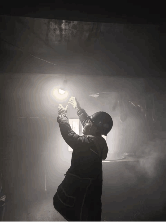 在故障点,年近五十的党员杨师傅和同事们借助应急照明灯的微光,在夜色中逐一排查覆冰线路和受损设备。雨水与雾气模糊了视线,浸湿了厚重的工装,他们的操作却始终沉稳有序。经过近三小时的连续奋战,凌晨4时许,最后一处故障修复完成,停电区域全部恢复供电。